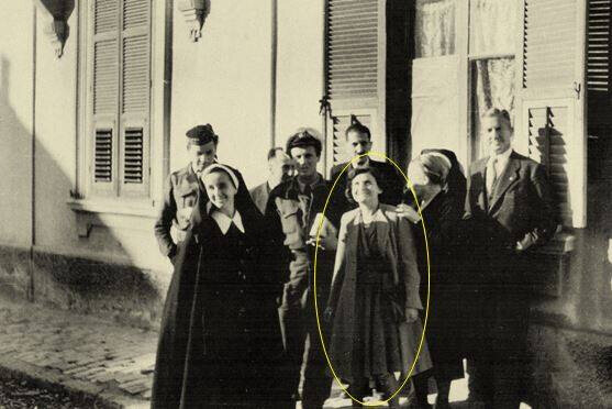 Βιργινία Ζάννα, το 1944, έξω από τα γραφεία του ΕΕΣ στην οδό Καλλάρη