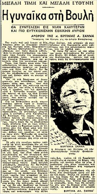 H Βιργινία Ζάννα (1897-1980), ήταν κόρη της Πηνελόπης Δέλτα, εγγονή το εθνικού ευεργέτη Εμμανουήλ Μπενάκη, και σύζυγος του πρωτεργάτη του κινήματος της Εθνικής Αμύνης στη Θεσσαλονίκη το 1916, και έγκλειστου των Γερμανών στις φυλακές Αβέρωφ αρχικά, και σε ναζιστικά στρατόπεδα συγκεντρώσεως στην Ιταλία, στη συνέχεια, Αλέξανδρου Ζάννα και, επίσης, γιαγιά του πρώην πρωθυπουργού κ. Αντώνη Σαμαρά.